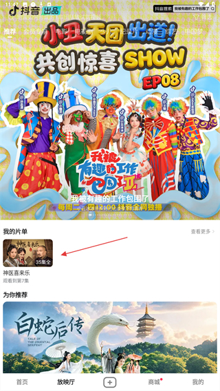 2、进入放映厅的页面内,点击下方要投屏的视频。