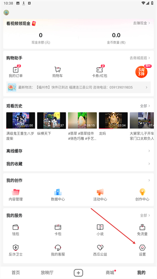 2、在我的页面中,找到设置按钮并点击,进入西瓜视频的设置页面。
