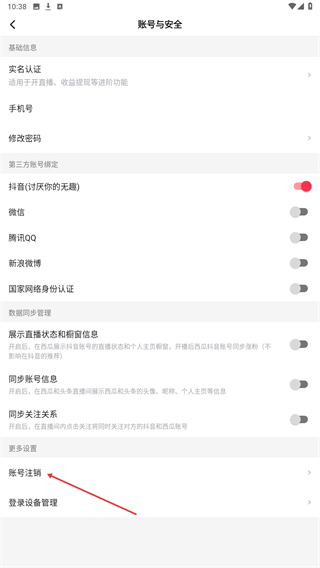 4、在账号与安全页面中,找到账号注销选项并点击,即可完成账号注销。
