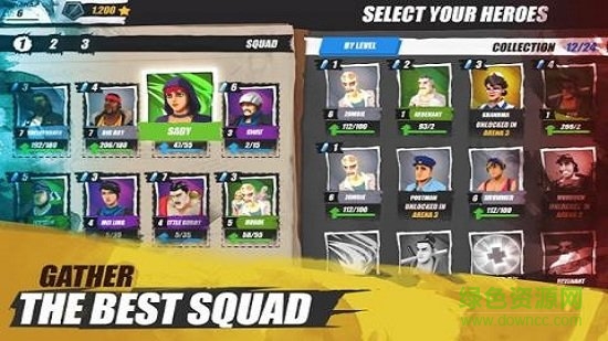 1.我们会发现有很多的英雄角色等待我们去解锁,每一个英雄都会有自己的技能,自己的特长,组合起来就是很强大的队伍;
