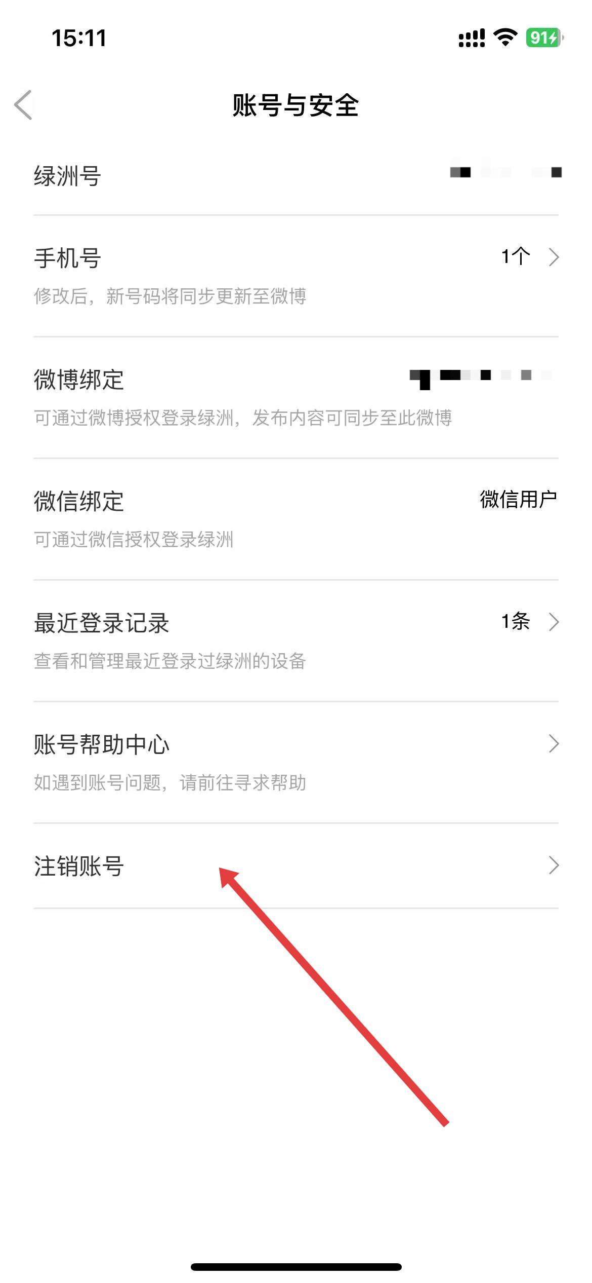 3、进入账号与安全页面后,下滑找到并点击注销账号。