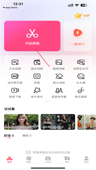 1、打开快剪辑的应用,进入时点击开始剪辑的按钮。