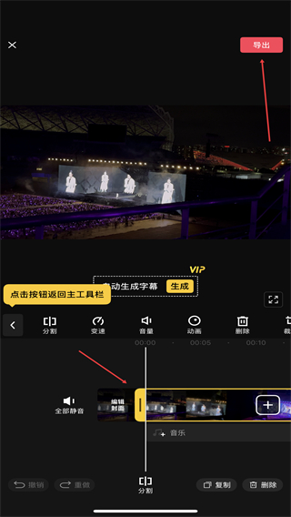 4、裁剪视频后,点击右上方导出的按钮即可完成剪辑。