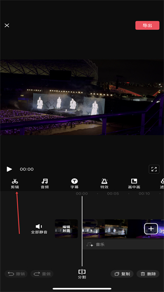 3、进入剪辑的页面内,选择并点击工具栏剪辑的按钮。