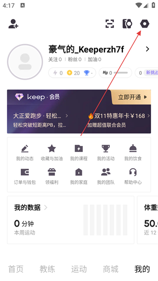 1、打开KeepAPP,点击右上角设置图标,进入跑步设置界面。