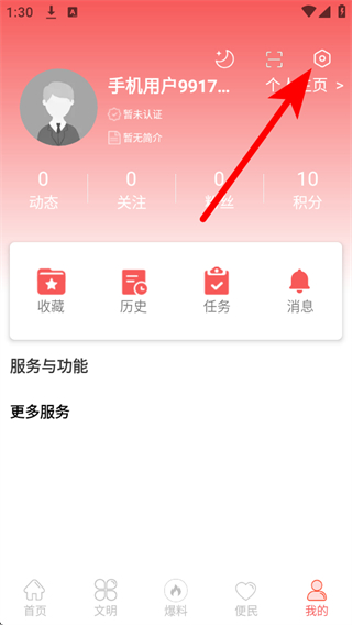 2、在个人页面中,点击右上角的设置图标,进入系统设置界面。