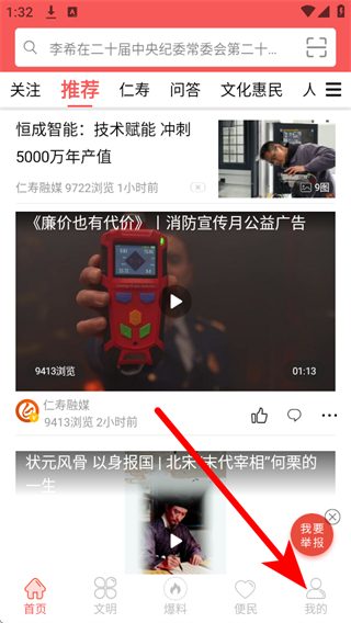 4、目前有关注、推荐、仁寿、热点、问答、野果视频、农民工之家、生活、党建、乡贤、就业、教育、健康、文旅、体育、法治、网上乡村、房产、汽车、美食等栏目。