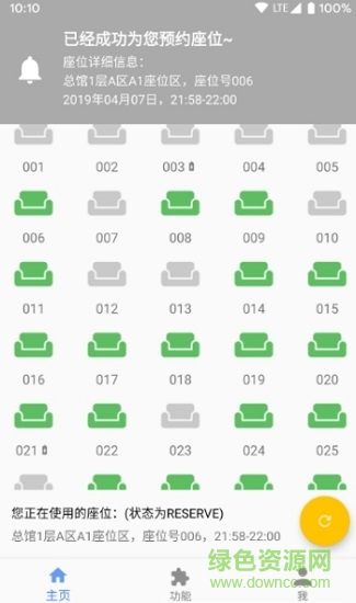 每天的1点到22点可以预约当天座位,22:45会开放第二天的座位预约。预约界面里,大家可以通过时间筛选