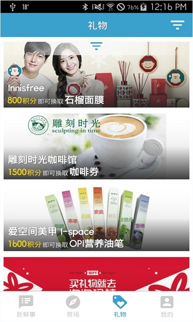 悦逛一款购物应用,用户使用本软件进入一家购物中心或商店,这款软件可以自动获得奖励积分,而且用户还可以把收集到的积分在店内兑换成你喜欢的各种消费卡、优惠券、咖啡、化妆品、篮球等商品。非常便捷实用!赶快下载体验吧!