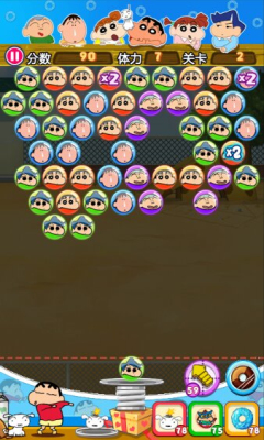 2.经典的泡泡龙消除游戏和蜡笔小新动画的结合非常的吸引眼球