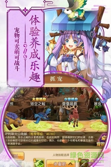 游戏主打宠物系统,宠物全靠抓,精品宠物还能交易。宠物可卖萌也可骑乘,宠物装备养成从始至终贯穿着游戏线。