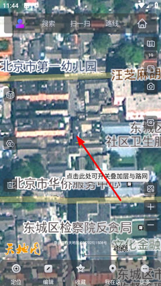 3、切换完成后,在地图上找到目标地点,放大地图,若该区域支持街景,会有相应标识,点击标识即可查看街景。