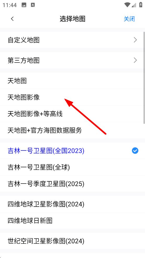 2、在选择地图界面中,找到并选择天地图影像选项,切换地图模式。