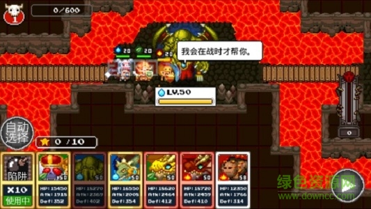 一款概念翻转的横版游戏,看上去是RPG其实是策略塔防才对吧。在游戏中,玩家将扮演大魔王,藉由布置陷阱或招募各式各样的怪物前来镇守关卡,阻止英雄们的侵略计划。由于游戏是采用自动进行的方式,因此大多数情况玩家必须审慎决定需要防守的怪物即可。然而藉由不断获胜所得到的资源来强化怪物,看着他们渐渐强壮,变成具有魄力的怪物,也是《欢迎来到地下城》吸引人游玩的要素之一。