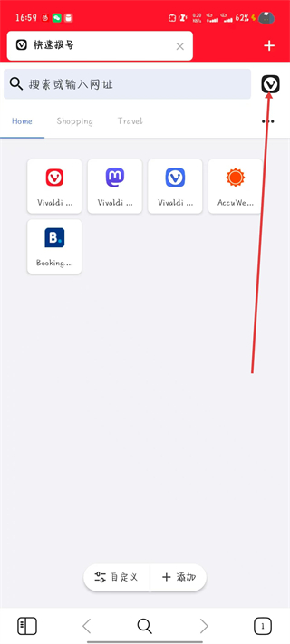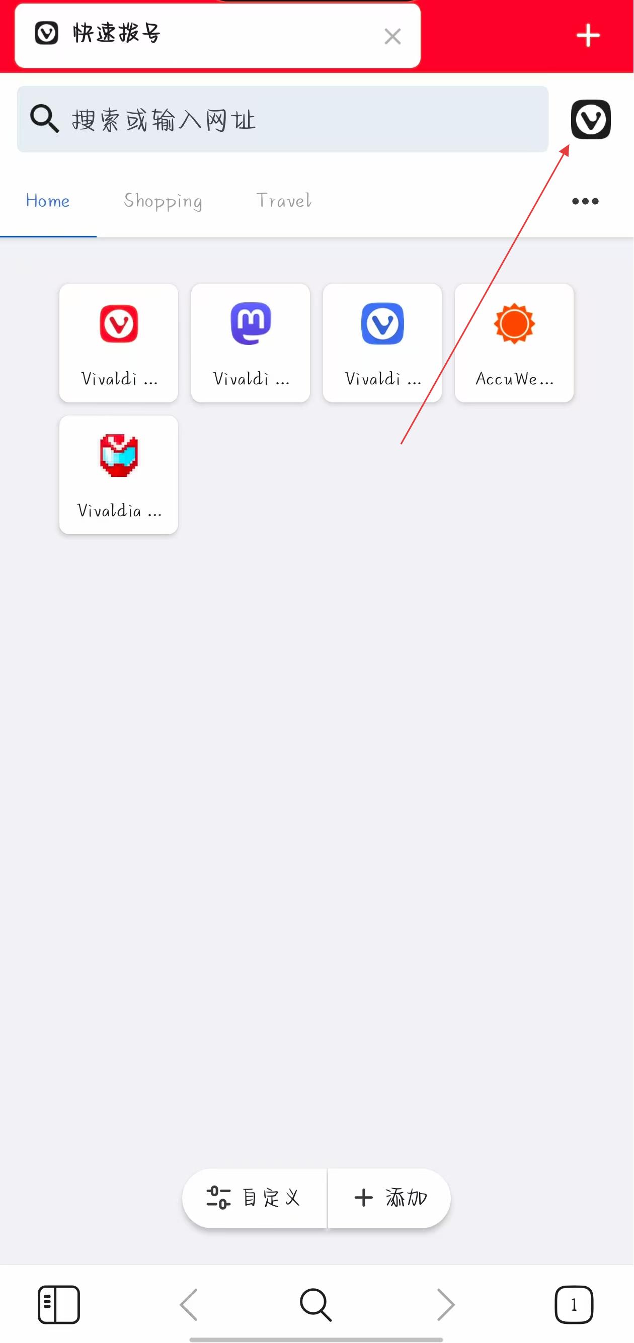 1、打开Vivaldi浏览器,点击右上角的图标。