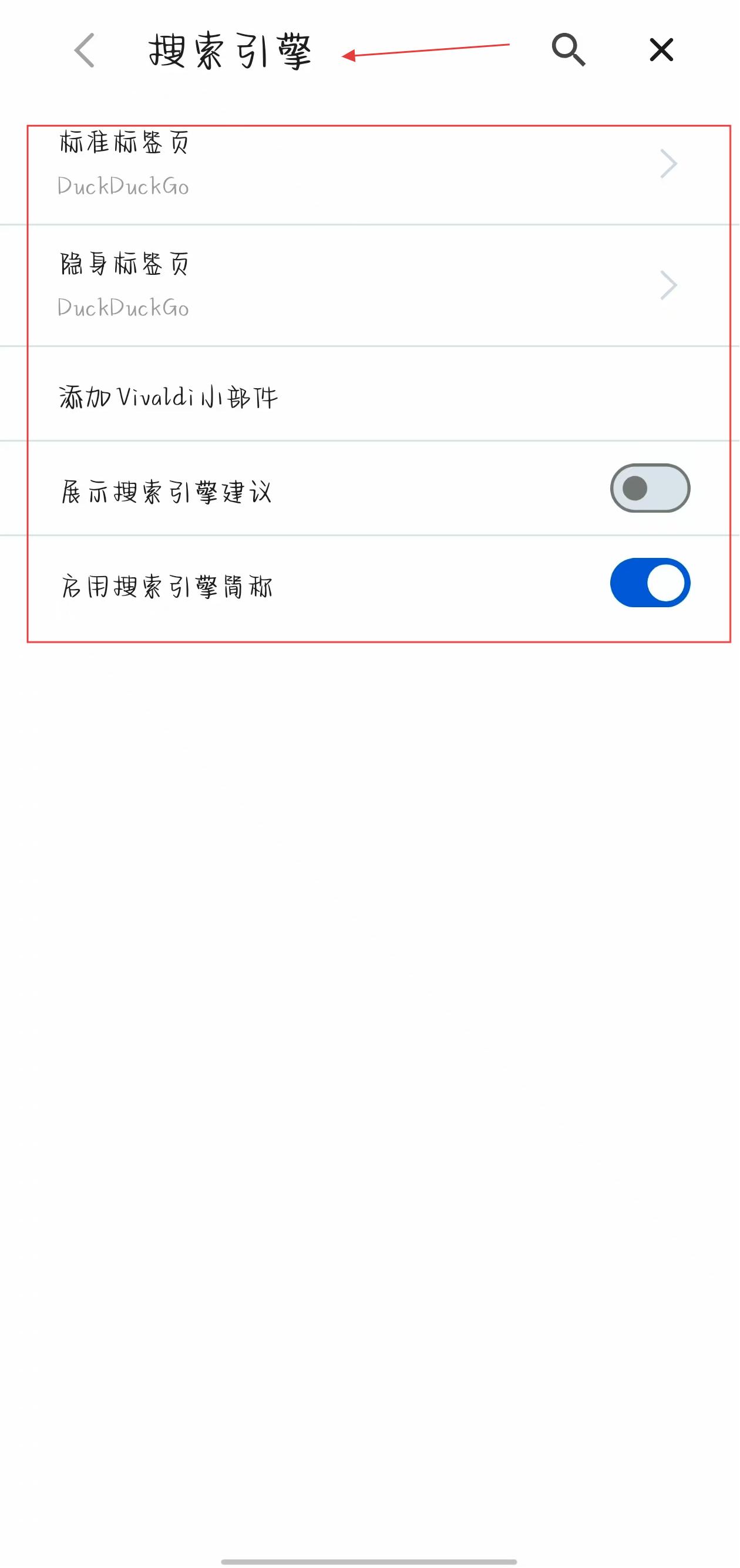 4、在搜索引擎设置页面,根据需求调整后,设置即可生效。
