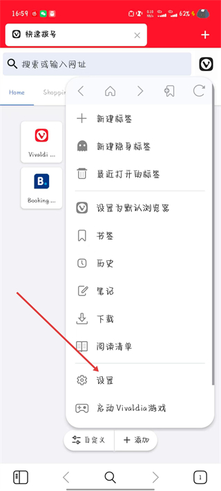 2、在弹出的菜单中,点击设置选项,即可进入设置页面。