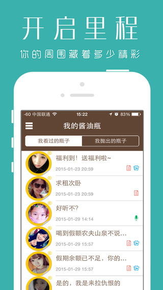 3.内容丰富:用户覆盖全国,话题包罗万象,每个瓶子都装着神秘、 偶然和期待。