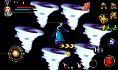 2、摇杆控制角色行走,右下角的虚拟键可以进行攻击;