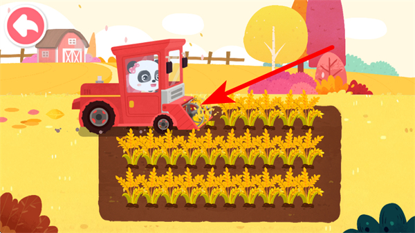 3、进入农事的环节后,需要操作农机如红色收割机收割作物如玉米,体验季节对应的农事操作,学习四季农业生产知识。