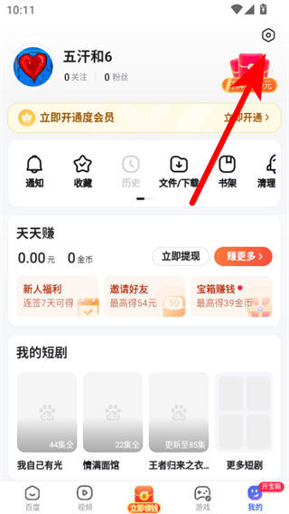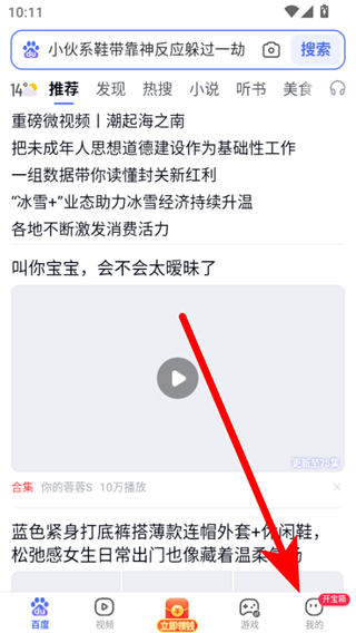 1、打开百度极速版,点击底部导航栏的的选项,进入个人中心页面。