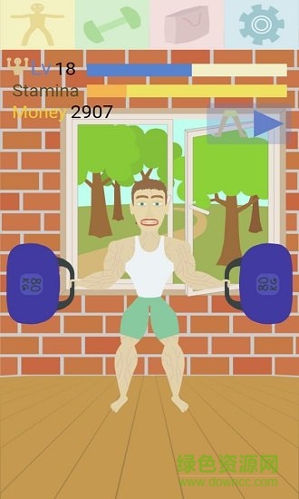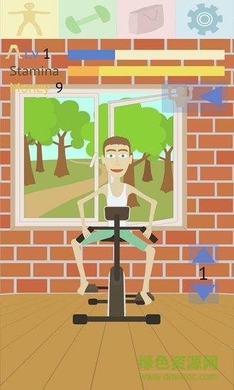 2.点击屏幕并抬起哑铃并旋转踏板运动自行车。为此,您将获得金钱和经验,但您的耐力会降低。如果耐力下降,那么你将变得更加难以训练。