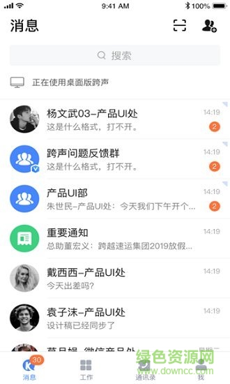 2.与一般基于陌生社交模式的应用有所不同的是,跨声提供了基于同事圈的熟人社交沟通模式。