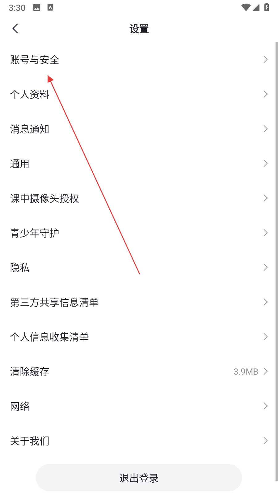 2、在设置界面里,找到账号与安全选项并点击,进入账号与安全页面。
