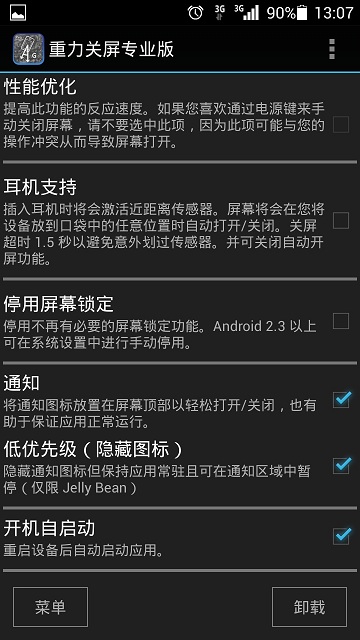 重力关屏(Gravity Screen)是一款自动开关屏幕软件。软件功能强大,为用户提供重力感应和近距离感应两大功能,通过重力感应、近距离感应器实现自动开关屏幕,解放电源键,节约开关屏操作时间,减少手机按键磨损。喜欢的朋友,赶快下载体验吧!