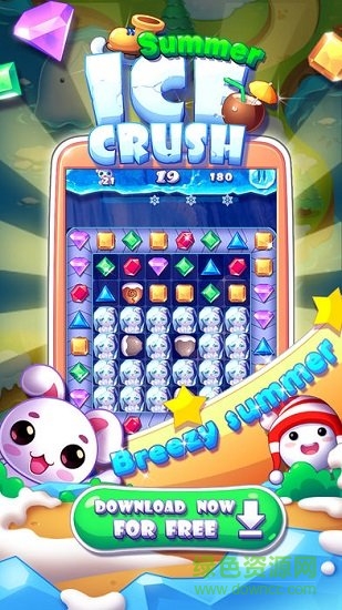游戏是附带趣味背景音乐的冰块粉碎类型的休闲消除手游,清凉的冰雪主题能让用户在炎炎夏日里获得一丝清凉。游戏画面严谨精致,为了凸显冰天雪地的效果,背景全部采用蓝白色为主进行铺垫,加上闪闪发光的各色宝石,以及各种萌物不断出现,让玩家游戏体验更上一层楼。另外它还内置了清爽的bgm与用户游戏节奏相辅相成,当冰块消除时触发的特殊音效更是让人悦耳舒心,值得一提的是用户只需通过将三个或者三个以上相同颜色相同形状的冰块移动摆放在一起即可达到消除效果,在限定步数内达成每关通关任务即可轻松过关。