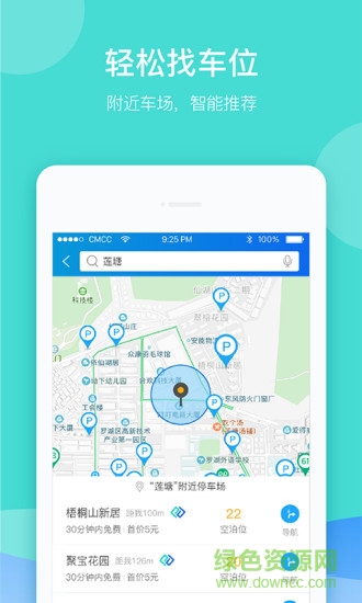 智能推荐附近停车场,快速找到停车位,一键导航至停车场;