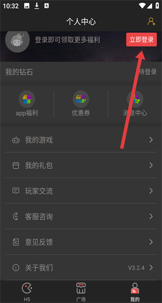 2、个人中心页面点击“立即登录”,进入登录选择页面。
