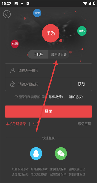 3、在登录选择页面点击“顺网通行证”,切换到顺网通行证登录界面。