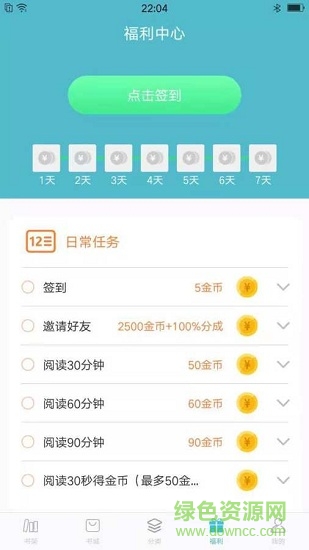 5.签到奖励:每日签到打卡都能获得金币奖励,累计阅读时长或邀请好友也能获得金币,福利多多。