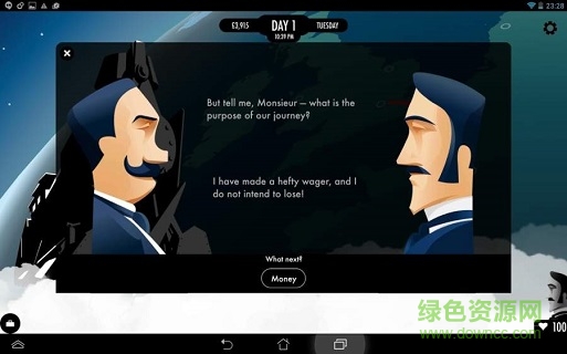80天环游世界 80 Days 是一款由开发商Inkle Studios推出的文字类冒险游戏。游戏是由小说《80天环游世界》同名改编,其中在原小说中两主仆主要通过海路,依次途经地中海、红海、阿拉伯海、印度洋、日本海、太平洋最终返还伦敦,而游戏中玩家面对的是全球多达150个城市,交通工具也加入了蒸汽时代最重要的产物——火车,如此一来,这一路的风土人情都要丰富精彩得多了。而游戏身为互动式文字冒险游戏,玩家还可自行选择冒险路线。喜欢文字冒险的玩家快来环游世界吧。