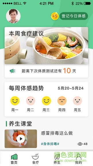慧食养app是专为广大用户朋友们所提供的一款养生服务软件,这里主要是规划大家的饮食习惯,根据你的体质强弱来为你推荐相应的食材与制作方法,让你的身体能够更加充满活力,有需要的朋友就请来绿色资源网下载使用吧!