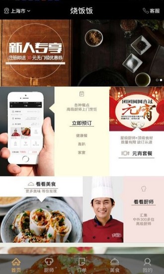 烧饭饭这款app是上海首家基于地理位置为用户提供上门烧饭服务的平台,进入界面,操作非常简单,搜索“烧客”——上门帮你烧饭的厨师与烹饪达人。点击每一位“烧客”的头像,就可以看到他的详细信息,包括年龄、籍贯、擅长菜系、服务时间、服务范围以及之前服务过的顾客的评价,也可以根据自己的口味来选择合适的“烧客”上门烧饭。