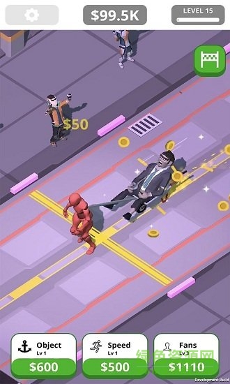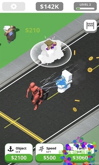 3.游戏的模式非常的简单,不断拉动物体赚取金币,升级力量和速度就可以了