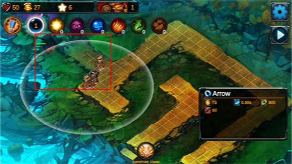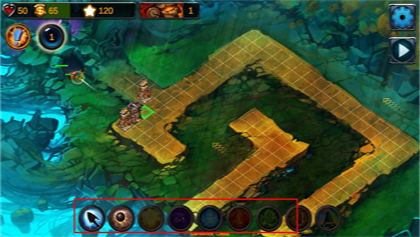 4、部署炮塔后,可选择底部的元素图标,为炮塔添加对应效果,提升防御能力。