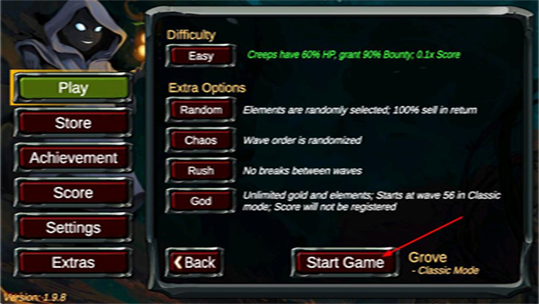 2、在模式选择界面中,确认选择经典模式,点击“StartGame”按钮进入关卡。