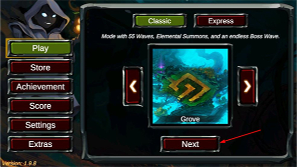 1、进入游戏界面后,点击“Next”按钮,切换到对应地图的模式选择界面。
