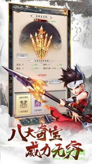 华丽翅膀、极品法宝为你提供大量战力,诛神套装助你一飞冲天。