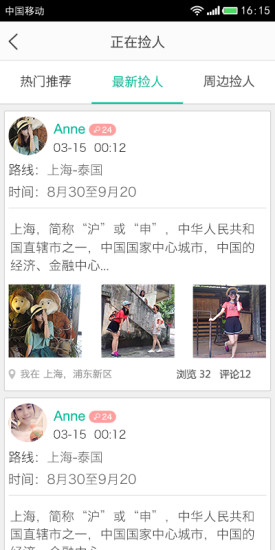 捡人iPhone版是一款能够快速找到志同道合的旅游手机软件。在这里可以结伴旅游,通过软件快速找到附近捡人,并且寻找当地人,捡个当地人做导游,不用做攻略,不会迷路,不怕被宰,还能吃到正宗的当地美食。而且软件每天都会新增1万条结伴信息,超过1万个当地人为你提供各种服务!喜欢的用户赶快来捡人一起去旅游吧!!!!