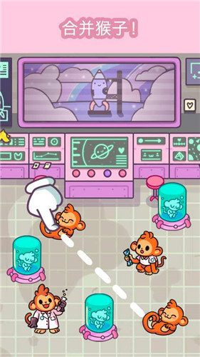 1、合并匹配的猴子来解锁可爱和奇特的全新进化过程。