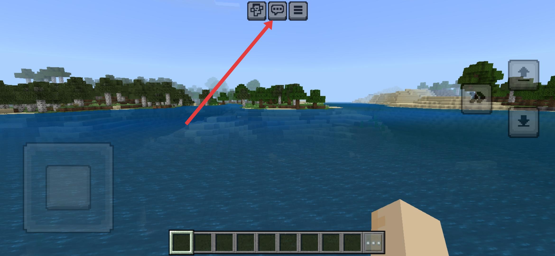 1、进入我的世界游戏场景后,需要点击界面顶部的聊天对话框图标,打开聊天交互的界面。