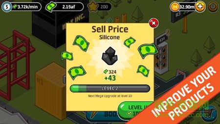 本游戏设计了全新的卡通画面风格,多元化的养成和建造系统,同时还加入了独立的放置挂机玩法,玩家可以体验到原汁原味的特色玩法!游戏中所有的涨跌都不是随随便便的,都会通过一系列的事件来展开,让玩家可以通过分析来寻找到切入点!展示成为老板,投资,选择战略和管理有史以来最大的行业帝国所需的一切!建立和升级新工厂,争取成功并学习如何制造产品。赶快来绿色资源网开启属于你的独特经营之路吧!