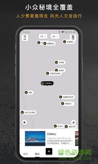 创建景点地图,支持多种搜索方式,获取“人少好玩”目的地,走到哪儿玩到哪儿,想玩啥就玩啥。
