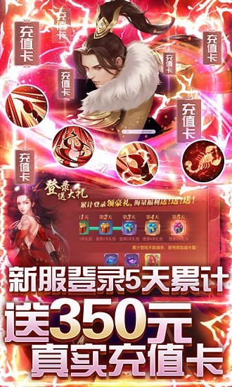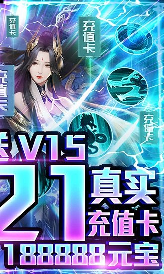 1.上线送V15、388888绑元、188888元宝、2021元真实充值卡,零充当大佬