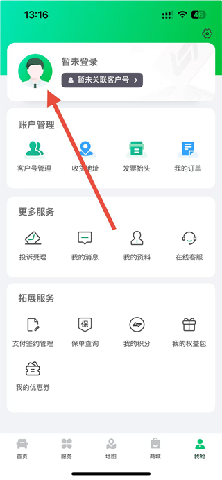 2、在当前页面中,点击暂未登录区域,进入登录界面。