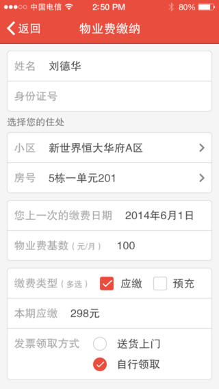 可查询最近一次缴费时间及目前的应缴物业费金额,还可根据该套房源的物业费基数进行预存,预存时间分四档选择(3个月、6个月、9个月、12个月)。使用支付宝/银联在线进行支付。